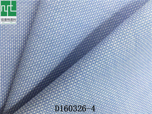 1.浅蓝丝光提花面料,色泽鲜亮,jianyue,深受时装、衬衫等采购商喜爱
